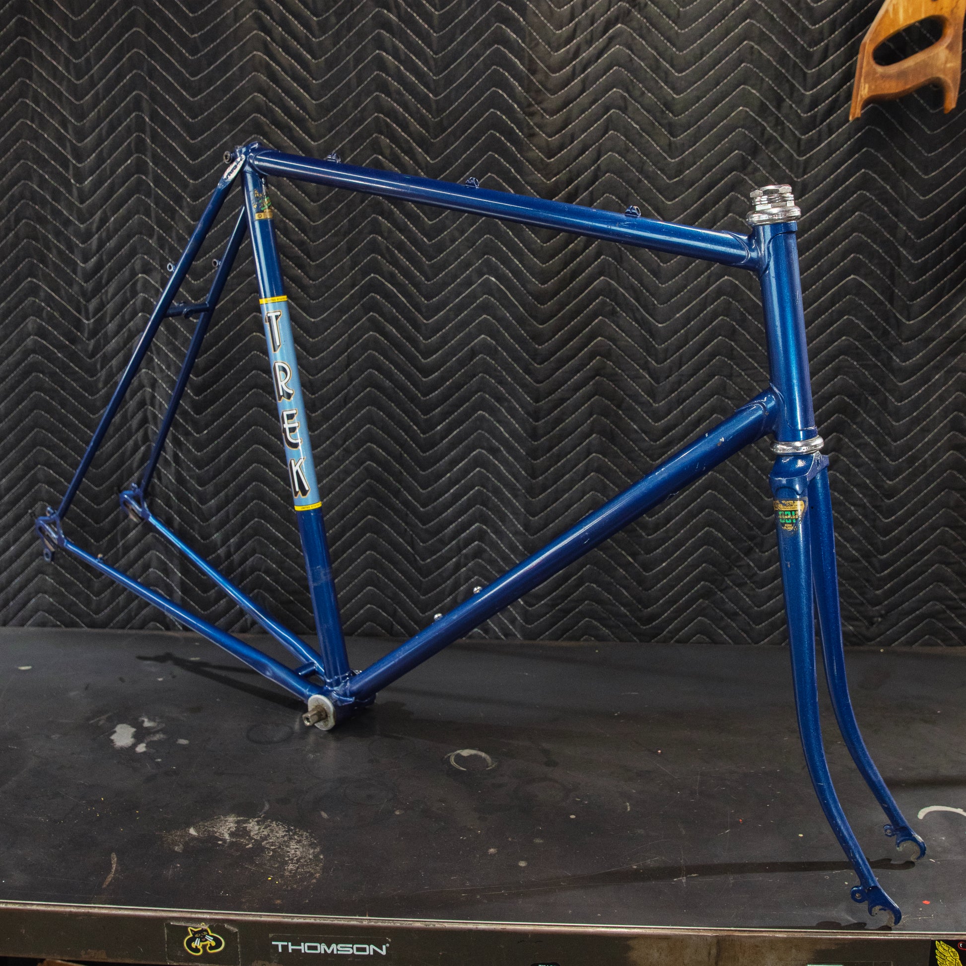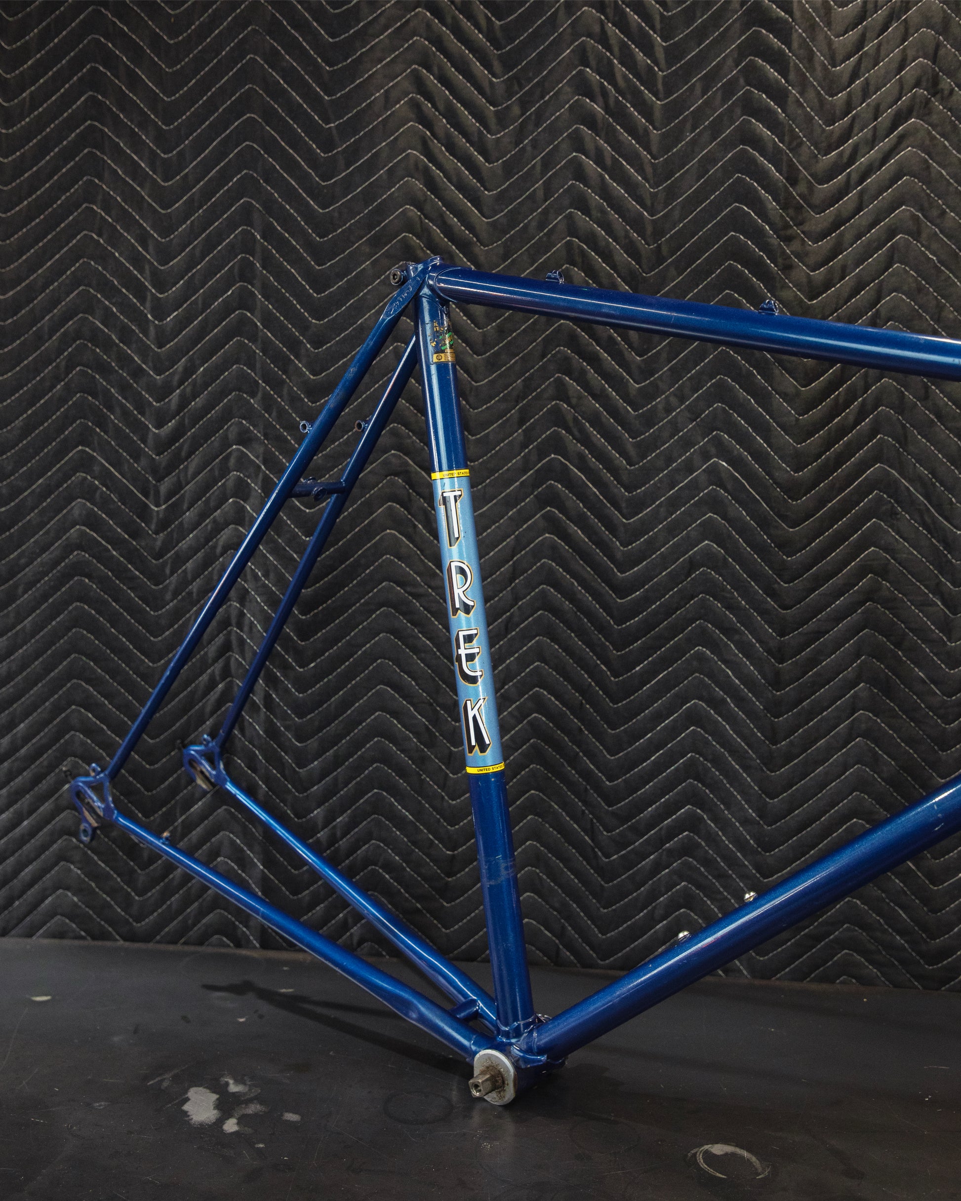 Vintage Trek road frame! Not sure what series it is, but has to be up there considering the Reynolds tubing and Campagnolo dropouts. Shows sign of use - has a few paint chips but no dents, bends, or cracks. No headbadge. Headset and bottom bracket have not been removed or inspected.
